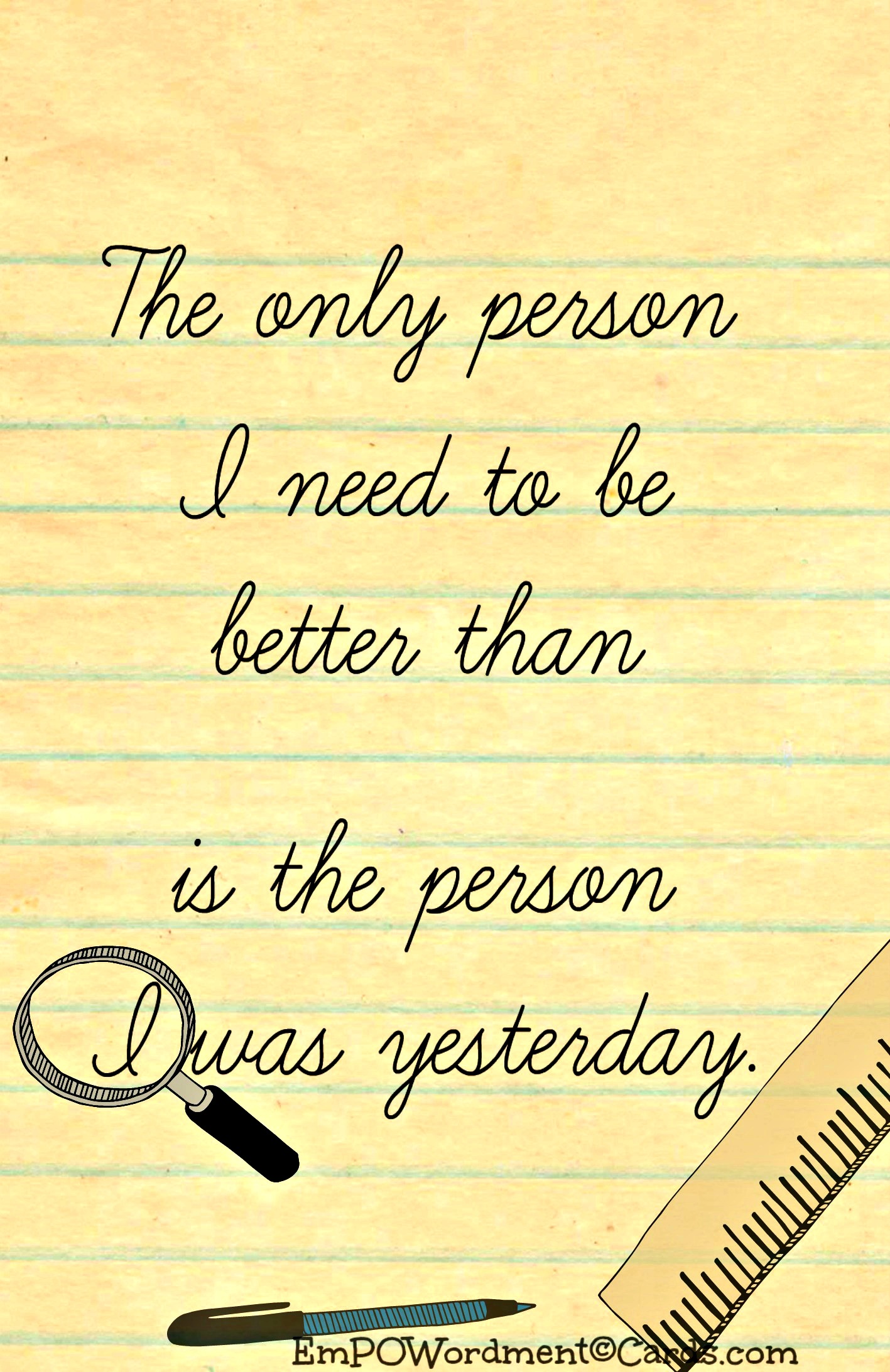 I have learned that my only competition is myself and my focus is now on changing for the better, every day if possible.