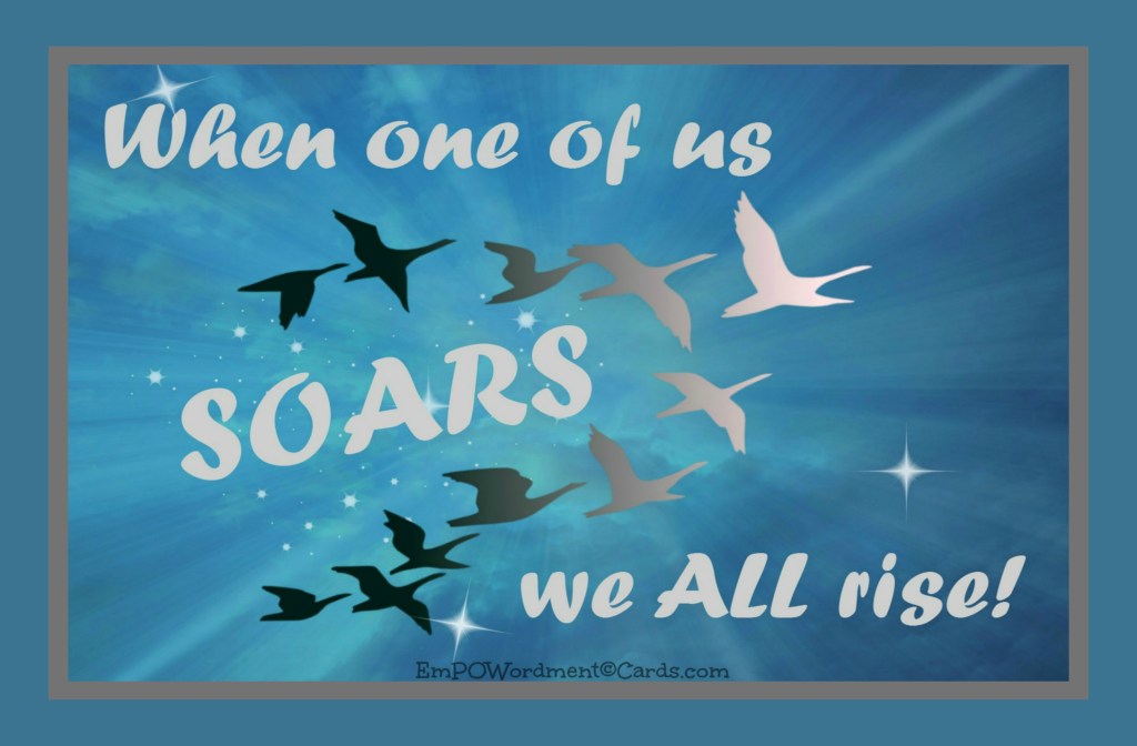 Let’s make a pact to support each other, okay? Reach out to people, even when you feel like covering your head. Because when one of us soars we ALL rise!!