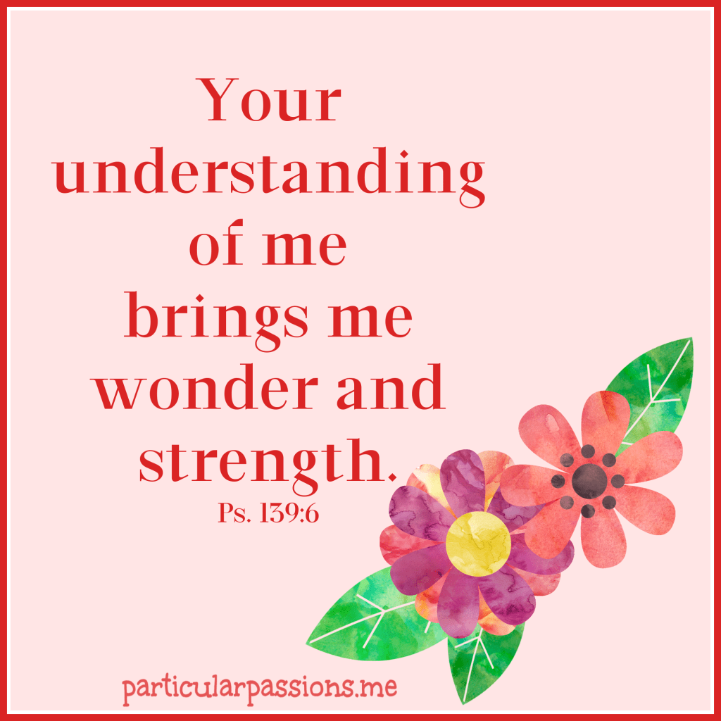 I’ve been reading Psalm 139 a lot this week. If you haven’t read it in a while, or not at all, perhaps that should go on your list of things to do. The whole psalm is full of wonderful, life-giving words.